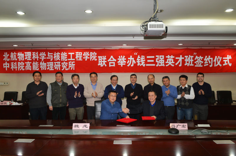 2016年12月30日下午,我院院长吕广宏教授率团访问中国科学院高能物理研究所并与高能物理研究所副所长魏龙研究员签署“钱三强英才班”合作协议。我院副院长黄安平教授、核科学与技术系主任竺礼华教授等和高能所学位委员会主任常哲、教育处处长何会林等出席签约仪式。签约仪式后我院代表团还参观了北京正负电子对撞机国家实验室、核探测与核电子学国家重点实验室、粒子天体物理中科院重点实验室、多科学中心等的高能所研究单位。