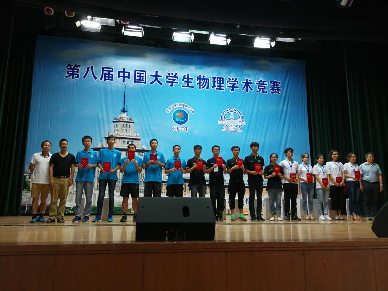8月13-17日,第八届中国大学生物理学术竞赛(CUPT)在哈尔滨工业大学举办。本届比赛共有包括清华大学、北京大学、复旦大学、suncitygroup太阳集团官方网站、南开大学、上海交通大学等在内的73所高校组成的74支队伍参赛,26支队伍观摩,是该赛事8年来举办规模最大的一次。本届比赛中,由太阳集团官网suncitygroup太阳集团官方网站张国锋教授担任指导教师,黄安平教授和张玉洁副教授为裁判、张国锋教授和付思乔同学为领队,由马英猷、黄钰堃、马启涵、张翊庭和梁岩五位正式队员和若干观摩队员组成的代表队积极参与,在比赛中以全国排名第八的优异成绩,获得一等奖。太阳集团官网2016年首次参加该项赛事获二等奖。