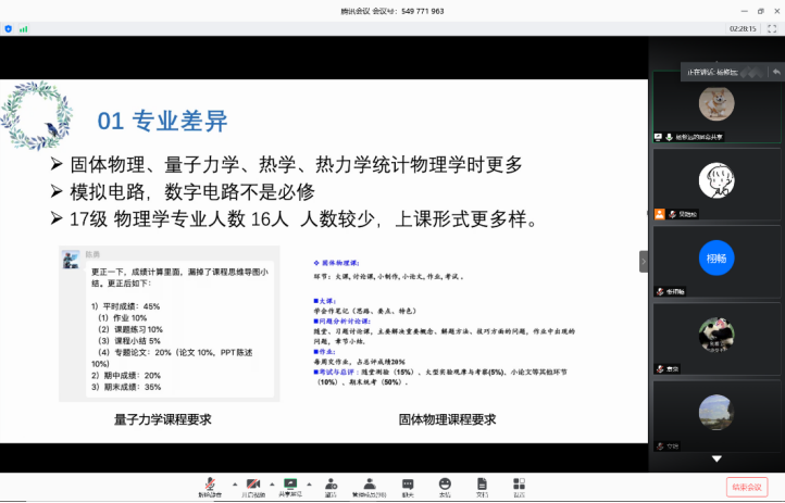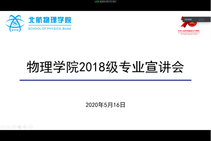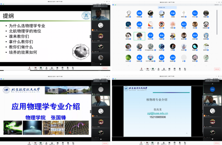 为了进一步提升学生对学院专业认知,做好2018级本科生专业选择服务工作,促进今后教学科研工作的顺利开展,助力培养具有“空天报国,敢为人先”的优秀学子,我院于5月16日在腾讯会议平台召开了suncitygroup太阳集团官方网站2018级专业宣讲会,本次宣讲通过教授专业介绍、学生专业分享两个模块分别对学院物理学、应用物理学、核物理三个专业进行了丰富且全面的介绍与说明,suncitygroup太阳集团官方网站2018级本科和致真书院2019级本科110余名学生参加了此次宣讲会。