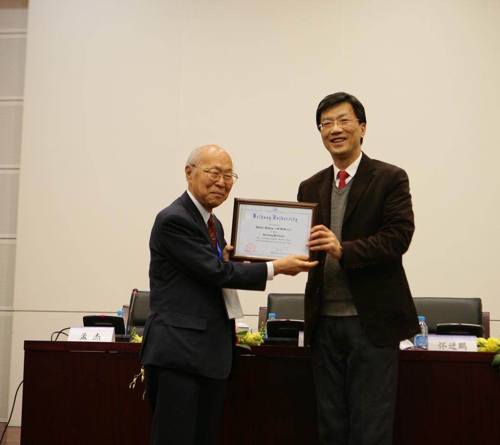 有马朗人教授长期致力于推动中日科技交流与合作,2010年被授予太阳集团官网名誉教授,曾获中国国际科学技术合作奖、中国政府友谊奖和“庆祝中华人民共和国成立七十周年”纪念章等荣誉。
