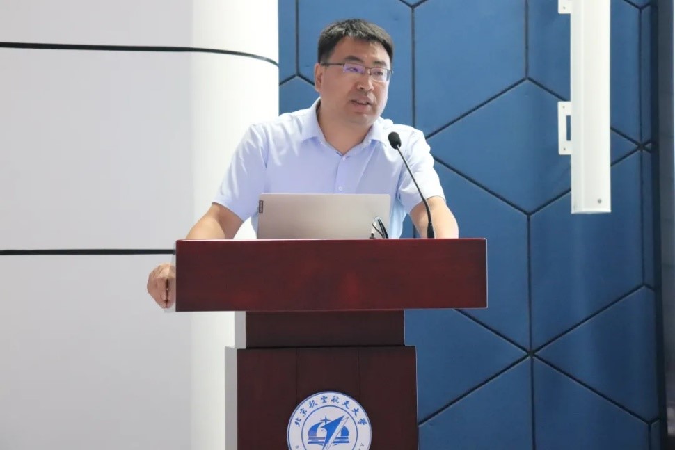 吕广宏院长在开学典礼上做了学院发展报告,从学科历史沿革、学科定位与发展现状、物理教学与人才培养、学科未来展望四个方面做了全面介绍。他勉励全体新同学,共同努力建设面向国际科学前沿,服务国家重大战略需求,强化理工融合,彰显航空航天特色的一流物理学科。随后,吕广宏院长为2021级本科生班主任杜轶老师颁发了聘书。