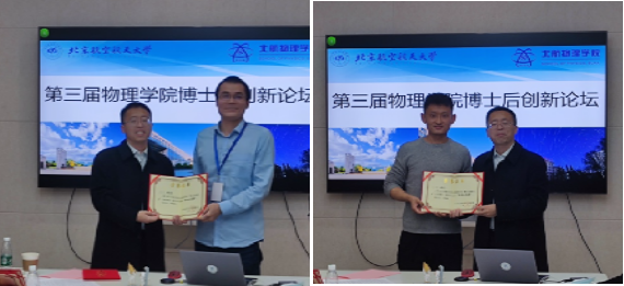 最后,副院长耿立升教授为本次论坛评选出的“报告小能手”万思杰和刘聚哲两位博士后颁发了证书。并对本次论坛进行了总结和展望,指出本次论坛是上两届论坛的延续和发展,依然秉承为学院博士后提供有效交流平台的宗旨。希望大家在此基础上开展学科交叉,做科研不是闭门造车,互动交流是非常重要的。今后学院会提供更多交流机会来促进博士后们的科研发展,祝愿大家在各自的岗位上再创佳绩。