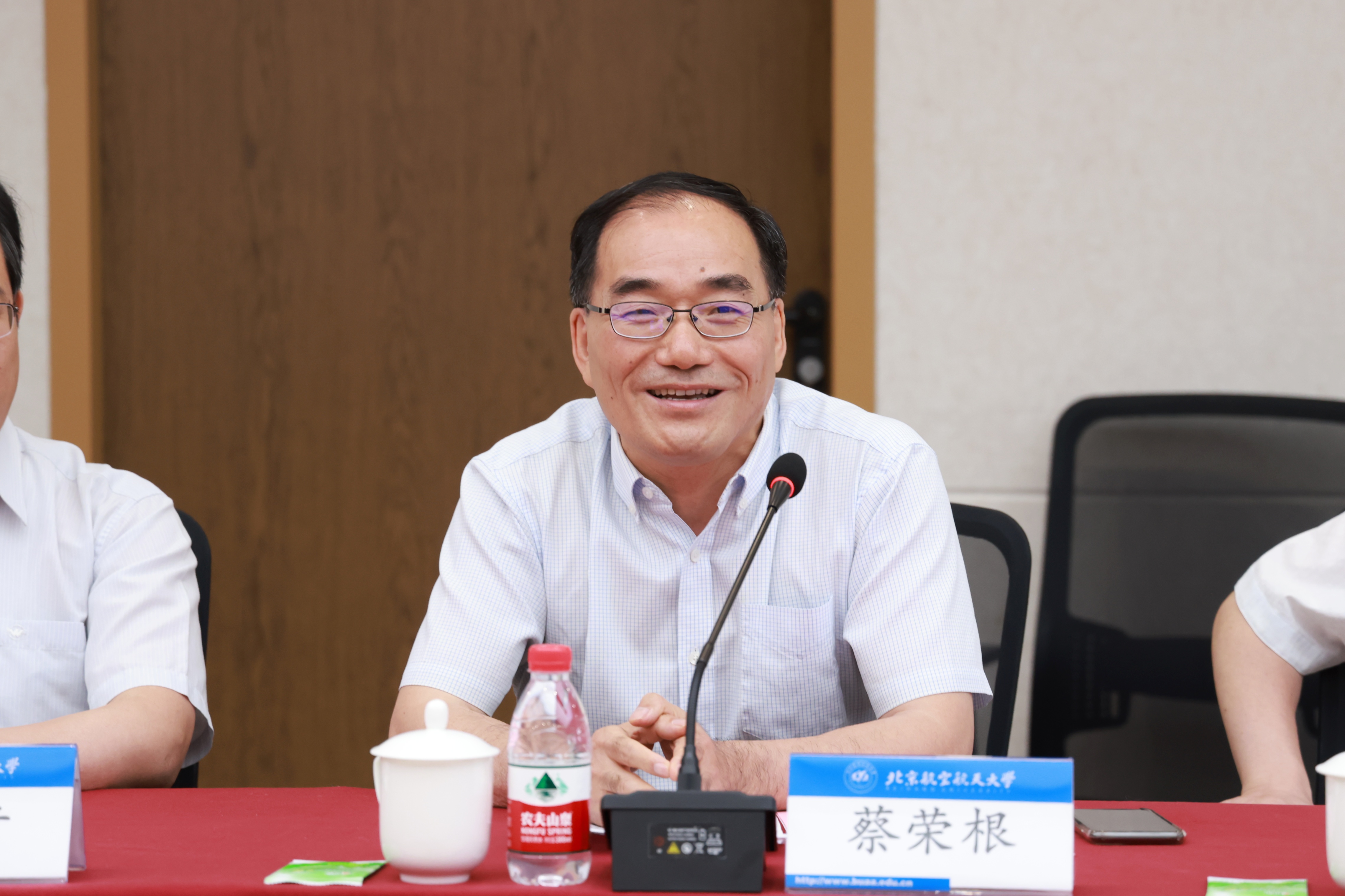 徐惠彬对蔡荣根院士、邹冰松院士一行的到访表示热烈欢迎。他指出,理论物理研究在自然科学研究中具有重要意义、在国家科技发展战略中占据重要地位。北航为国而生、与国同行,以服务国家为最高追求,始终围绕国家重大战略需求开展人才培养和科学研究。他表示,中心的成立旨在汇聚国内外高端人才,进一步提升青年教师及研究生的培养水平,全面提升服务国家重大战略需求和探索国际科学前沿的竞争力。希望以此次中心建立为契机,与理论所密切联系、深化合作、高效互动、优势互补,聚焦重大前沿科学问题,促进交叉学科发展,探索创新型人才的培养模式,为国家大科学工程提供有力支撑,为实现高水平科技自立自强做出新的更大的贡献!