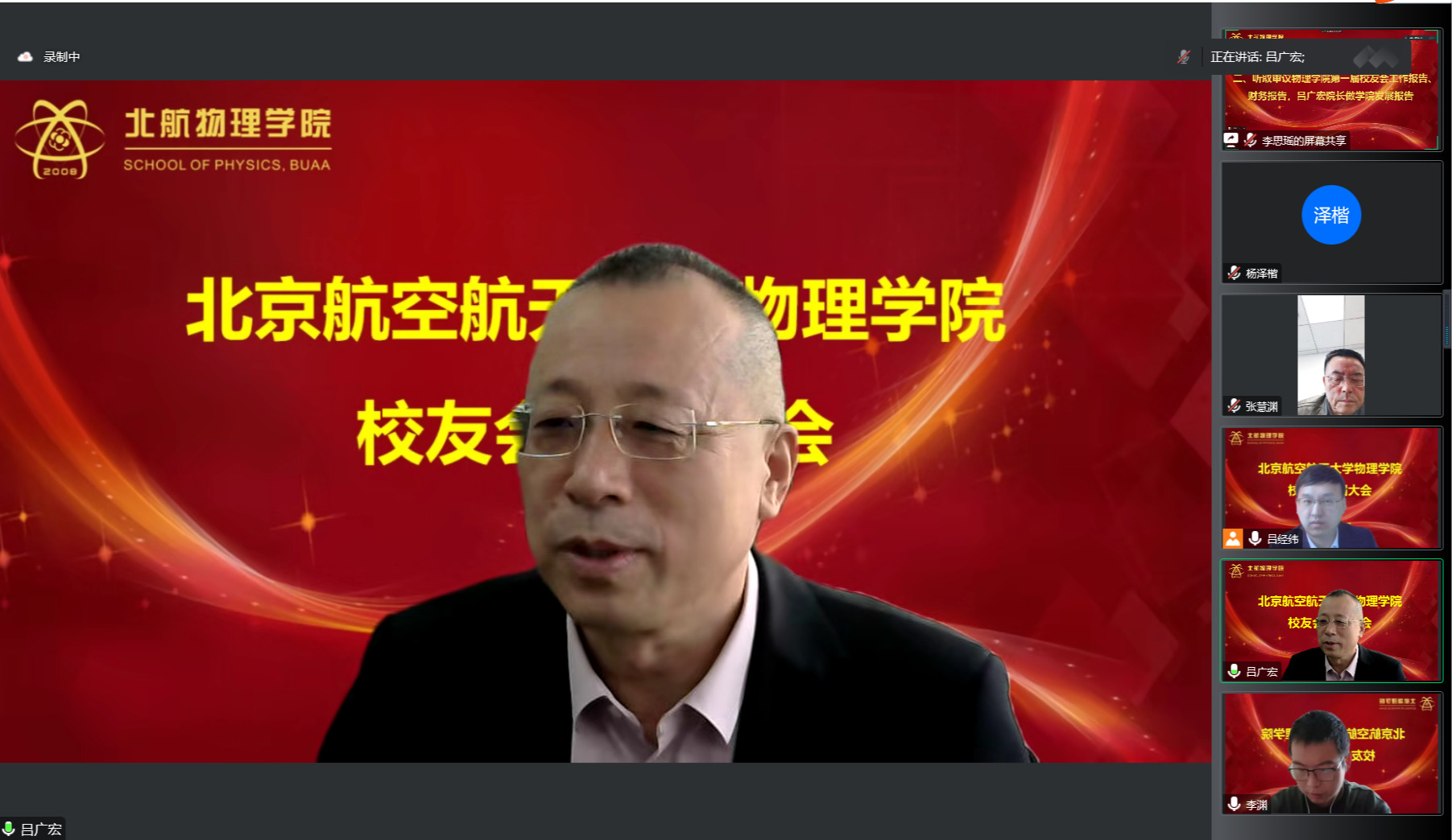 2022年10月15日上午,suncitygroup太阳集团官方网站校友会换届大会通过腾讯会议举行。北航校友发展联络处处长张慧渊、suncitygroup太阳集团官方网站院长吕广宏、suncitygroup太阳集团官方网站党委书记李广超、30余名校友代表参加了会议,会议由学院党委副书记吕经纬主持。