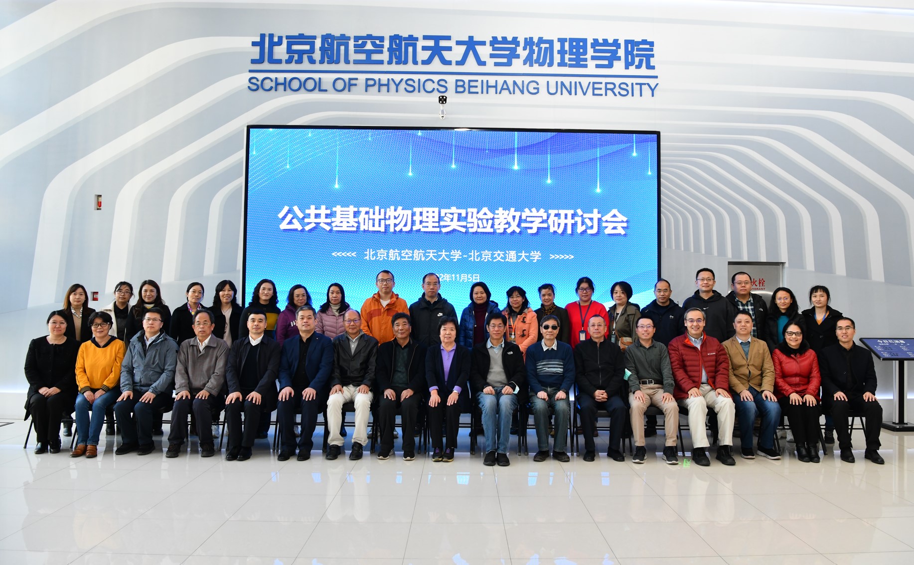 2022年11月5日,suncitygroup太阳集团官方网站-北京交通大学公共基础物理实验教学研讨会在太阳集团官网沙河校区召开。北航学院钱政院长,教务处金天副处长,suncitygroup太阳集团官方网站吕广宏院长、黄安平副院长,北交大物理科学与工程学院彭继迎副院长,国家/北京市教学名师王玉凤、陈强、陈子瑜、李华、徐平,以及两校物理实验中心共40余位教师参加会议。会议由吕广宏、黄安平、金硕、彭继迎主持。