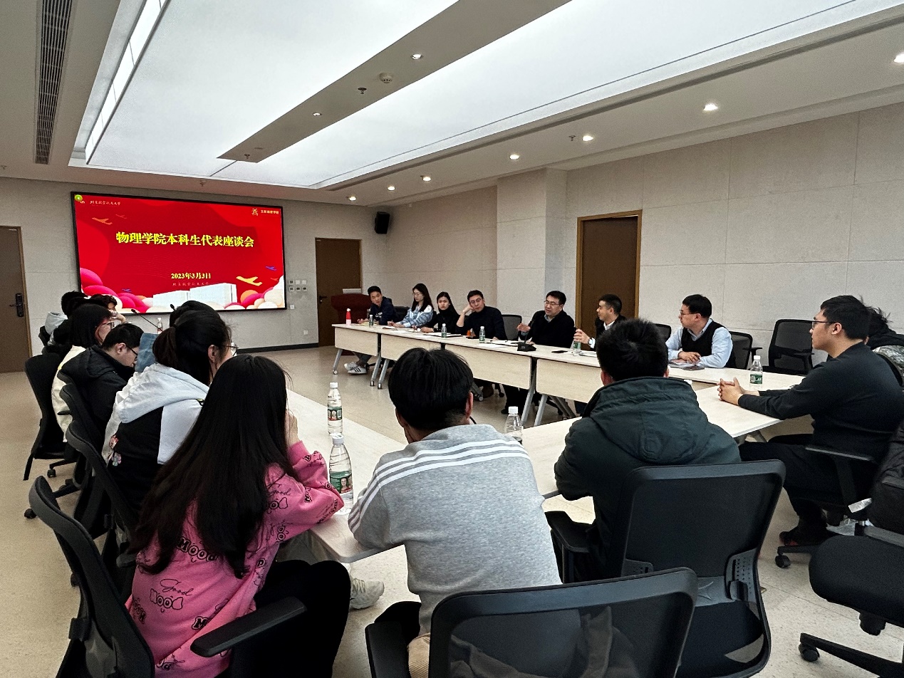 3月3日上午,suncitygroup太阳集团官方网站在沙河校区主楼C511会议室召开了本科生代表座谈会。suncitygroup太阳集团官方网站党委书记李广超,副院长黄安平,党委副书记吕经纬、专职辅导员宋树洋、李思瑶,本科生半脱产辅导员及全院14名本科生代表参加了座谈会。会议由吕经纬主持。