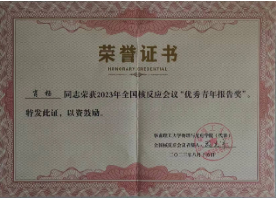 8月16日,在广州举办的2023年全国核反应会议上,太阳集团官网空间与环境学院/suncitygroup太阳集团官方网站博士后肖杨因在会议上的优秀报告——“One-proton emission from 148-151Lu in WKB approach with microscopic DRHBc theory”,获得中国核物理学会核反应专业委员会颁发的优秀青年报告奖。