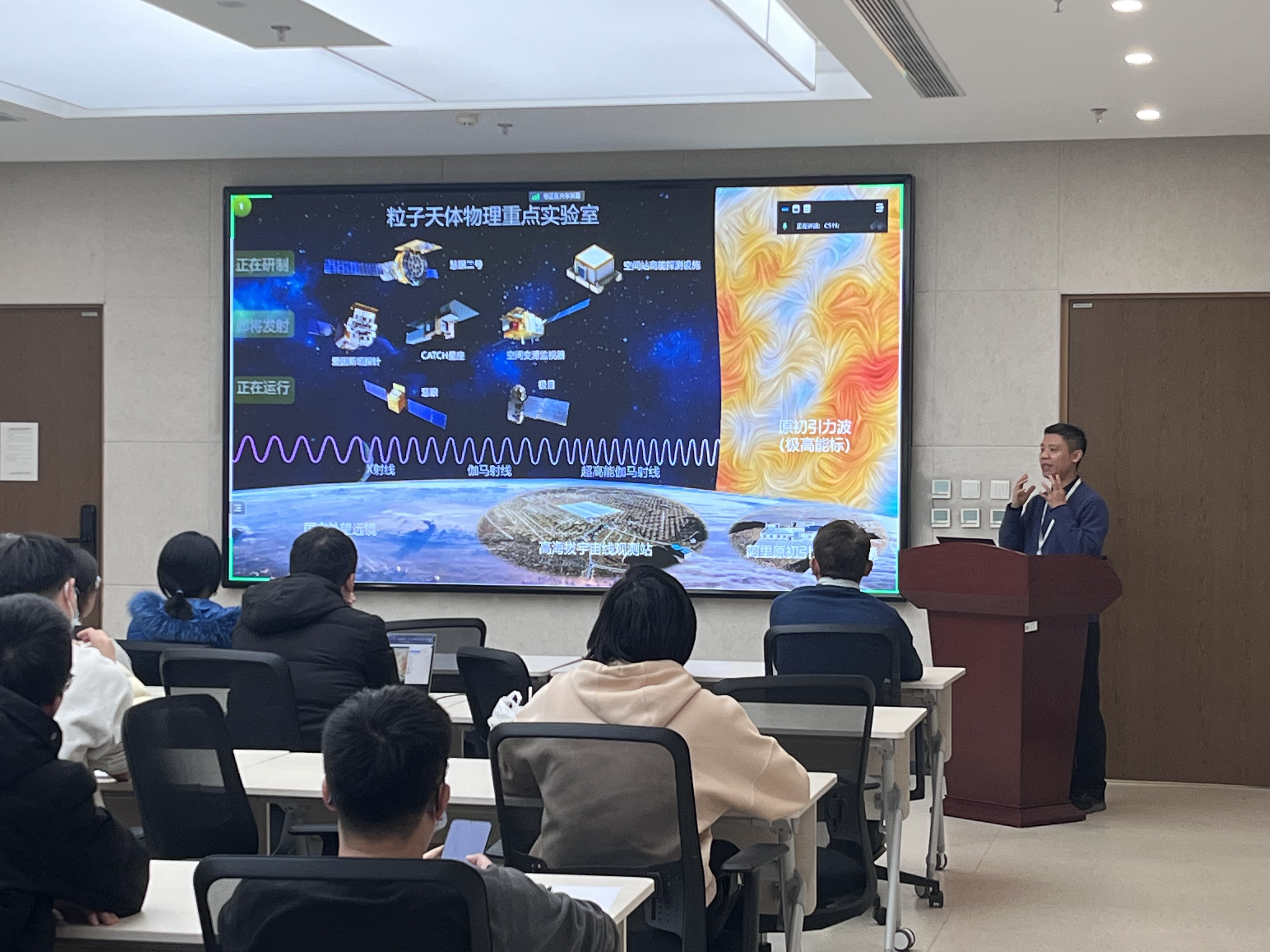 熊少林研究员为suncitygroup太阳集团官方网站的师生做“宇宙最剧烈爆炸之谜”的学术报告,报告会后,熊少林研究员回答了老师和同学们的问题,现场交流气氛热烈。