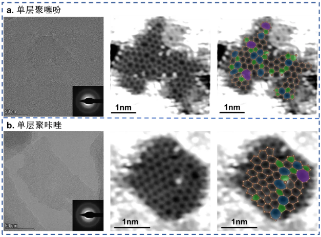 研究团队还将这一普适性的合成策略成功应用于含其他杂原子的单层非晶碳材料的制备,包括聚咔唑(PCZ)和聚噻吩(PTH)等。该项工作在二维聚合物限域合成领域迈出了重要一步,为未来开发性能优越的二维非晶材料提供了新的研究方向。这类材料在电子器件、储能、催化等领域具有潜在的应用前景。
