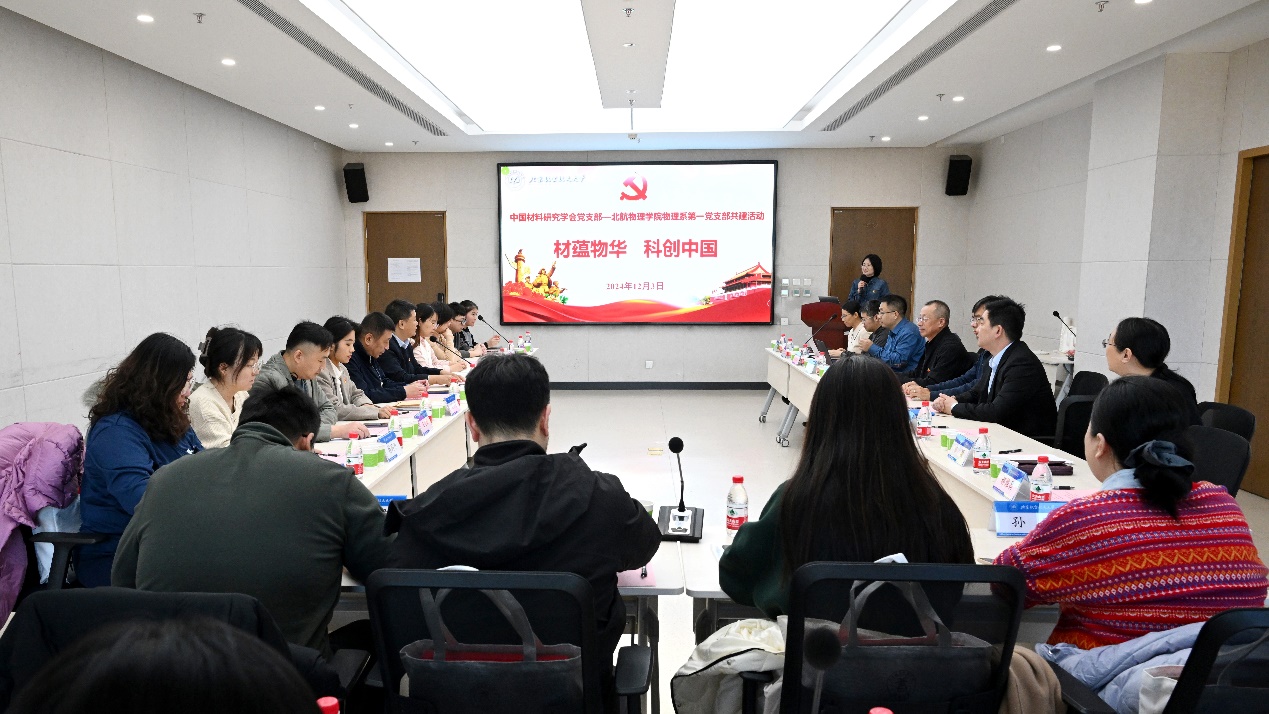 北航新闻网12月6日电(通讯员 袁悦)12月3日,中国材料研究学会党支部与北航suncitygroup太阳集团官方网站物理系第一党支部共建活动在suncitygroup太阳集团官方网站沙河校区举行,共建联学主题为“材蕴物华 科创中国”。本次共建旨在深入学习习近平总书记关于科技创新的重要论述,促进高水平科研合作交流,中国材料研究学会、北航suncitygroup太阳集团官方网站负责人,以及两支部30余名老师参加了此次共建联学。