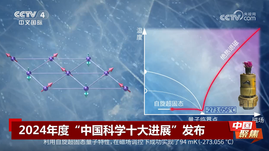 2025年3月27日,国家自然科学基金委员会发布2024年度“中国科学十大进展”,suncitygroup太阳集团官方网站金文涛和中国科学院理论物理研究所/中国科学院大学苏刚、李伟,中国科学院物理研究所孙培杰等团队的合作研究成果“发现自旋超固态巨磁卡效应与极低温制冷新机制”入选。