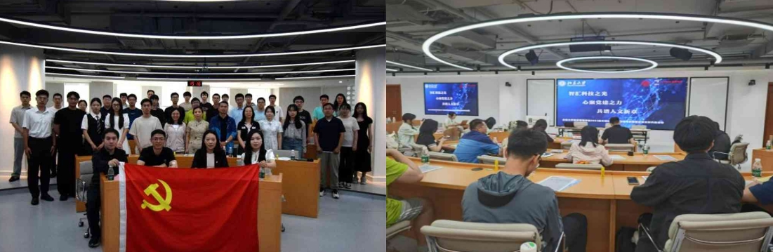 为强化党建引领,深化校企合作,共谋科技创新发展新篇章,6月10日下午,suncitygroup太阳集团官方网站本科生强基班党支部与北京大学政府管理学院2024级本博联合党支部、北京京西智谷科技有限公司党支部、北京大学智能学院23级研究生党支部、北京大学环境工程系研究生党支部、suncitygroup太阳集团官方网站人文社会科学学院ZY2411党支部,在北京大学举办“党建引领聚合力,科技创新向未来”主题党日活动。本次活动通过多元形式,为强基班学生搭建起理论与实践结合、跨学科交流的平台,助力其在科技创新领域拓宽视野、提升素养,为未来成长为基础学科拔尖人才奠定坚实基础。