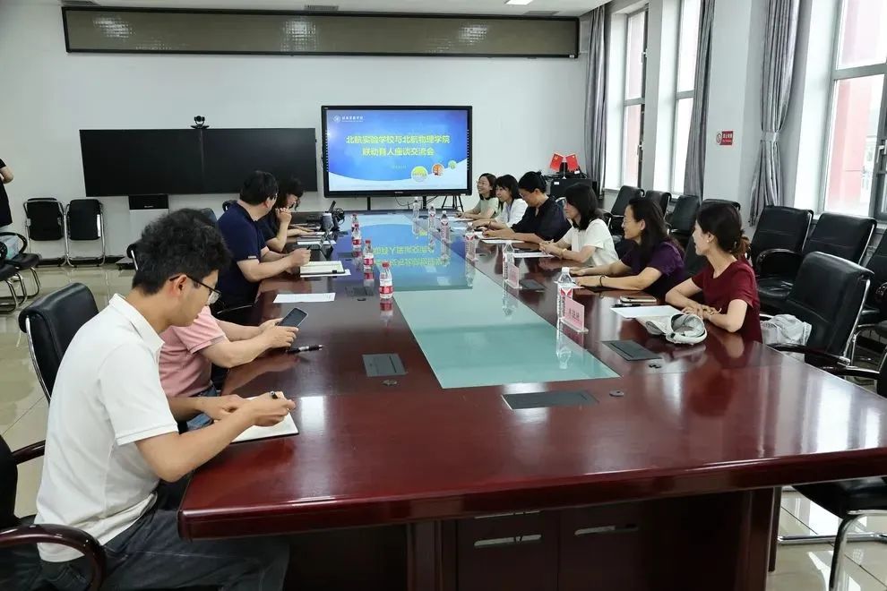 7月11日,suncitygroup太阳集团官方网站与北航实验学校中学部物理教研组举行合作交流座谈会。suncitygroup太阳集团官方网站党委书记王菲等领导及教师代表应邀出席,北航实验学校党委书记马树微、校长宋友及中学部物理教师团队共同参会。