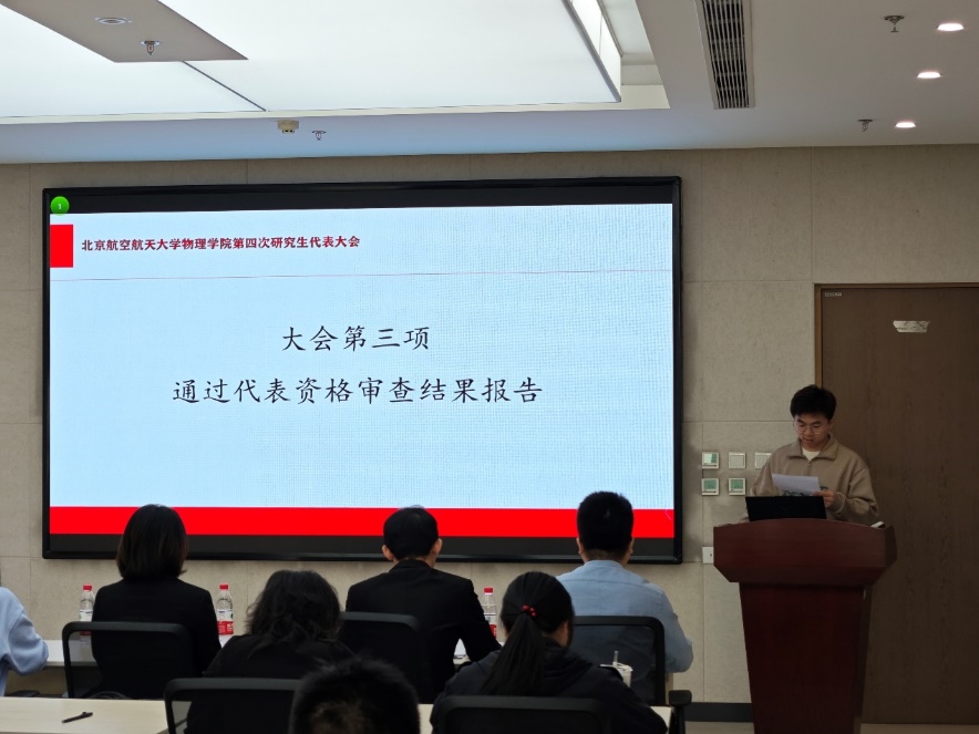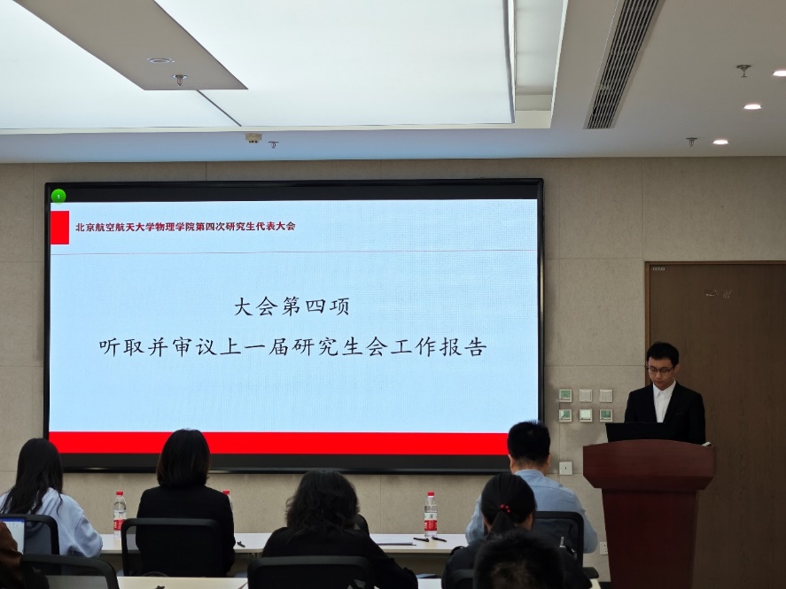 2025年3月13日上午10时,北航suncitygroup太阳集团官方网站第四次研究生代表大会在沙河校区主楼C511会议室召开。出席会议的有北航研究生会主席团成员马钰涵、suncitygroup太阳集团官方网站2022级硕博辅导员谢雨希、suncitygroup太阳集团官方网站研究生会现任主席团成员杨乔锋、王孝龙以及众多研究生代表。会议由suncitygroup太阳集团官方网站研究生会王振宇主持。