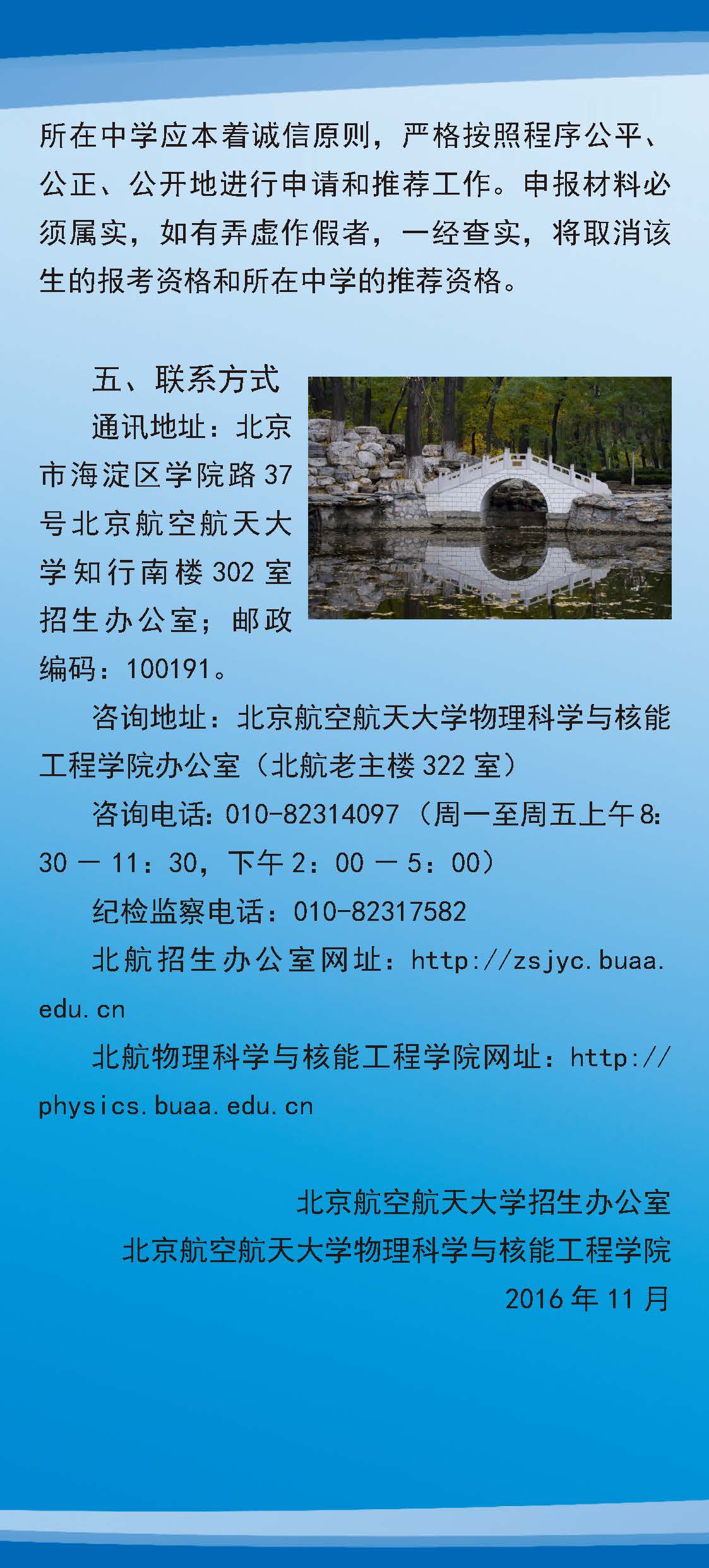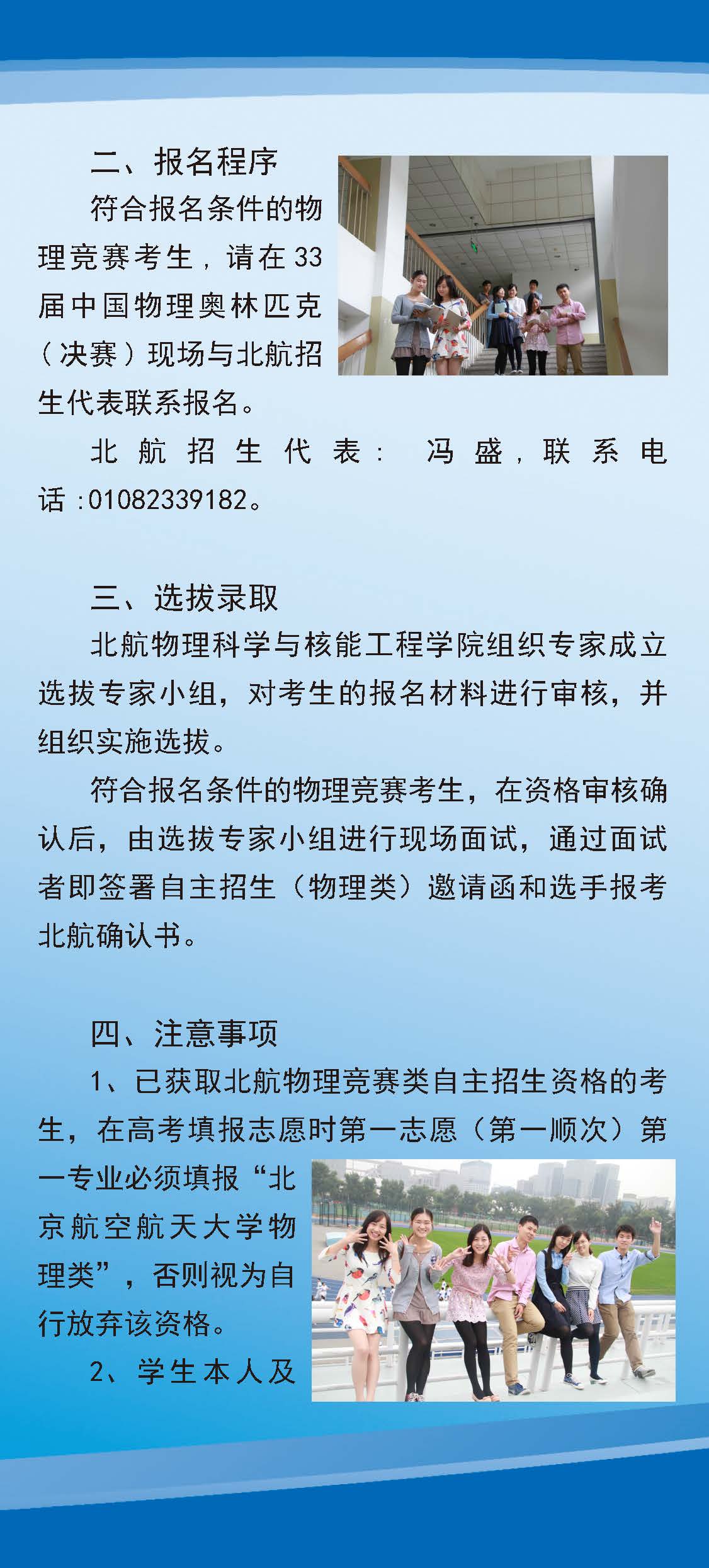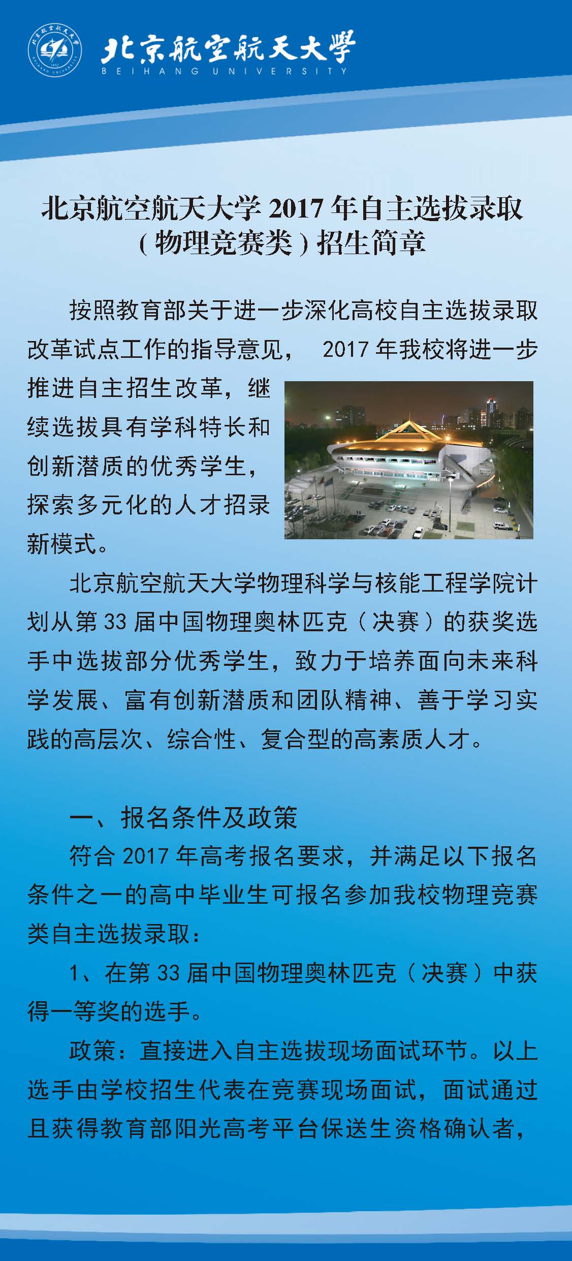 北航2017年自主选拔录取(物理竞赛类)招生简章