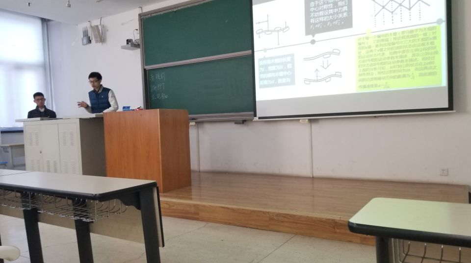 本次现场答辩在沙河校区两个教室同时进行,每一个答辩场地有4名评委老师和1名学生评委。每一位参赛选手有10分钟的时间展示自己的研究成果,包括题意重述、原理分析、实验验证以及下一步的研究计划等等。选手展示结束后,并有5分钟的时间评委向答辩选手提出问题以及一些改进的建议。最后,每位评委老师会亮出自己的评分,并有评委进行点评。