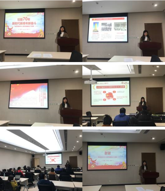 20191120日星期三下午14点,在沙河校区主楼CC511室,suncitygroup太阳集团官方网站BY1719党支部和SY1819党支部进行了“不忘初心、牢记使命”主题教育学习日活动,BY1819党支部的部分党员也参加了活动。习近平新时代中国特色社会主义思想北航研究生宣讲团的付莹莹同学题为《壮丽70年新时代新青年新奋斗》的报告。